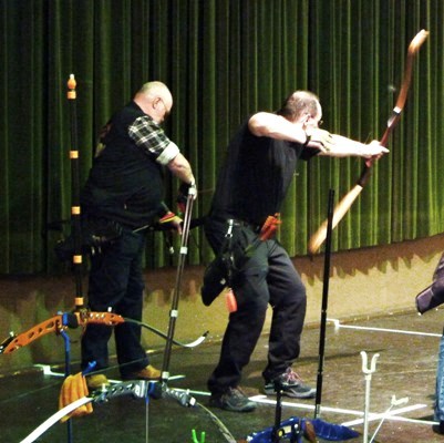 Die letzte Gruppe am Start.....ein Bogenschütze mit "eigener Stilart".....!